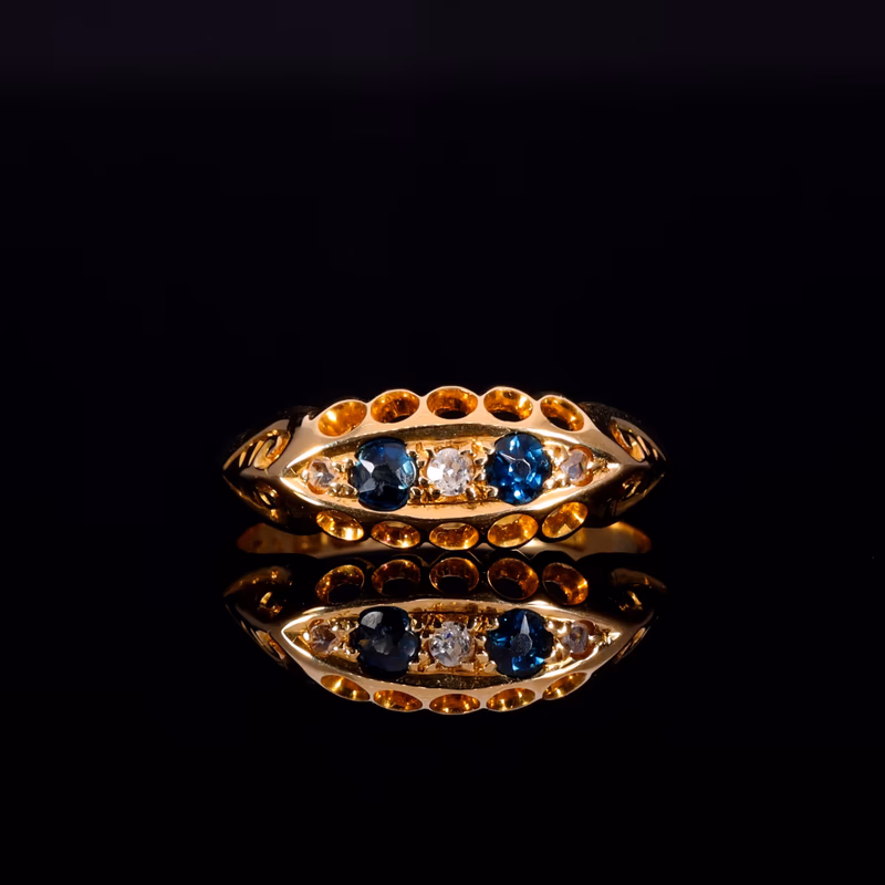 The Antique 1915 Diamond And Sapphire Boat Ring