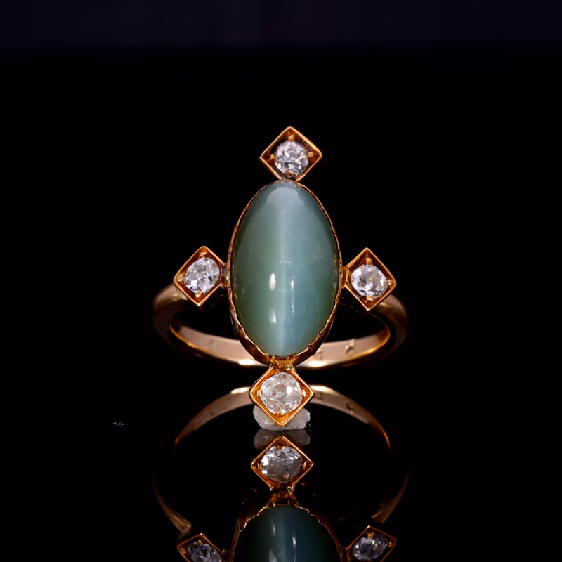 The Antique Cats Eye Chrysoberyl and Diamond Ring