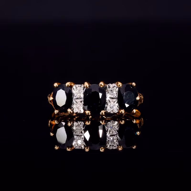 The Vintage 1979 Three Cushion Cut Sapphire And Diamond Ring