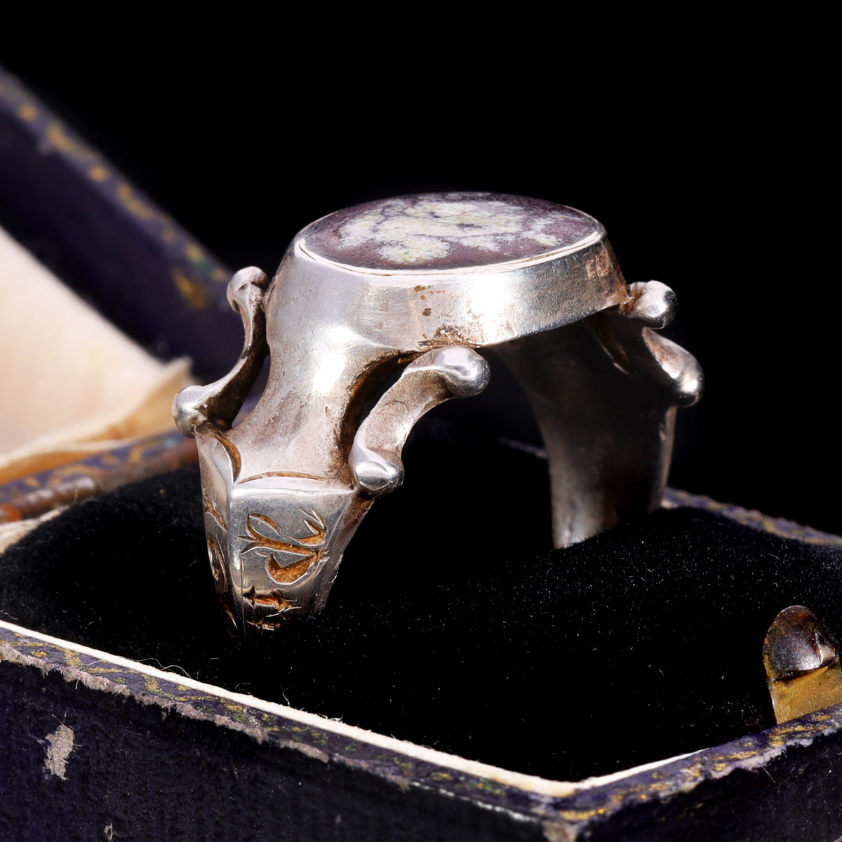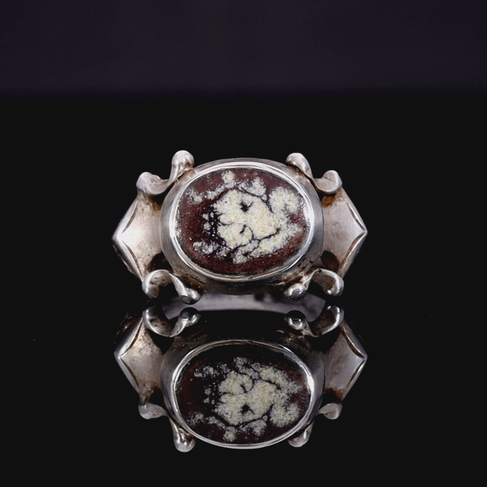 The Ancient 1601 Renaissance Silver Memento Mori Portrait Ring
