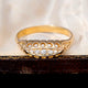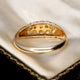 This classic-style boat ring features five old-cut diamonds, for a total of 0.05ct. The openwork band is designed to allow as much light as possible to shine in and hit the diamonds, creating a sparkle effect.