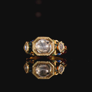 The Antique 19th Century Northern Indian Mughal Diamond And Enamel Meenakari Ring