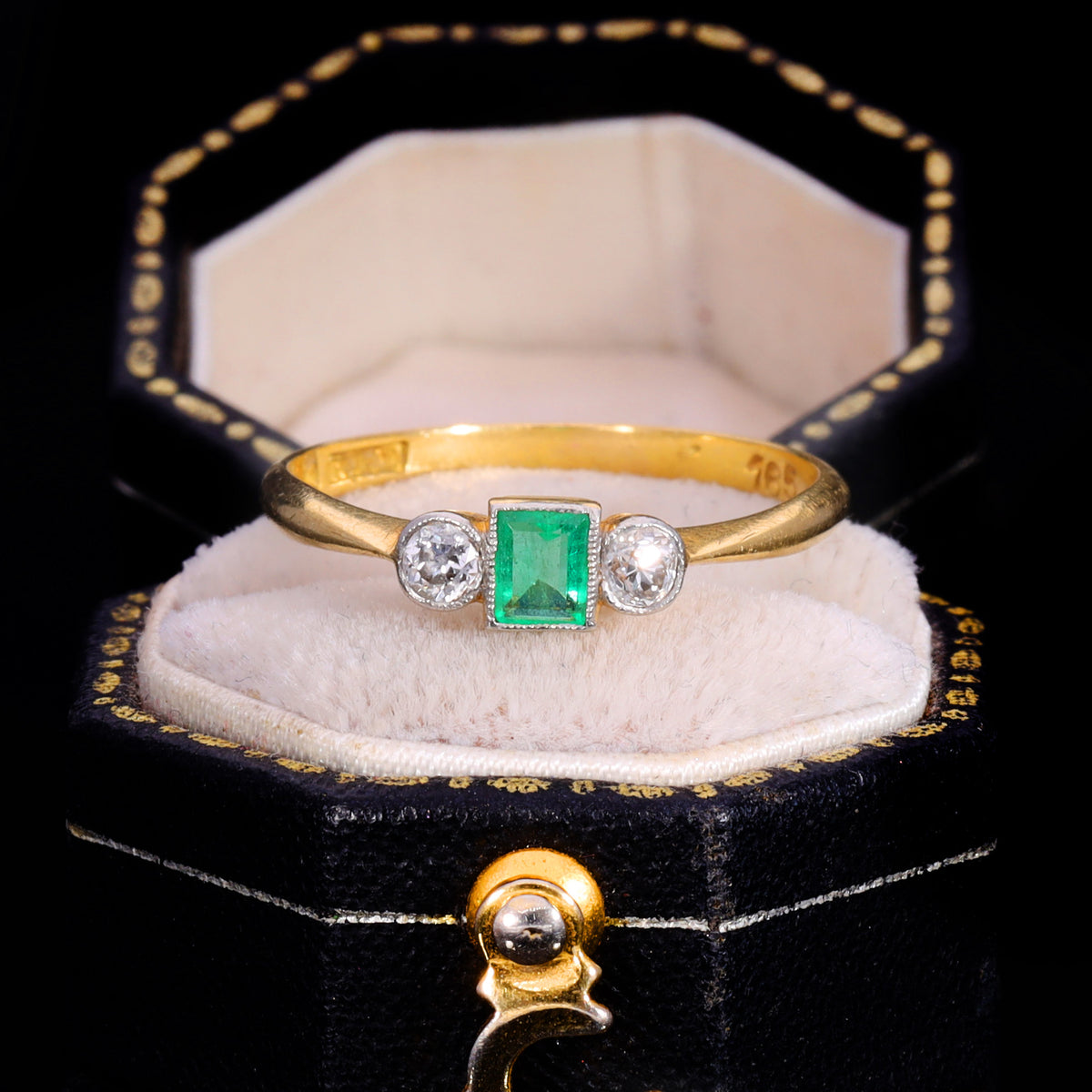Load image into Gallery viewer, The Antique Emerald And Diamond Three Stone Ring