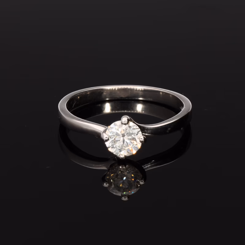 This stunning ring features a brilliant cut diamond of 0.66ct, held in a claw setting which twists around the diamond for a classic feel with a creative twist. This setting allows as much light as possible to reach the diamond, letting it shine to its full potential.