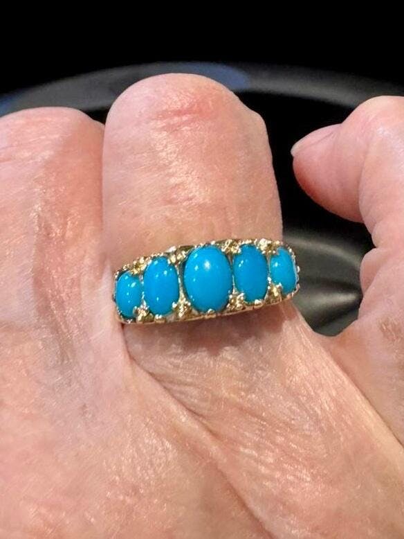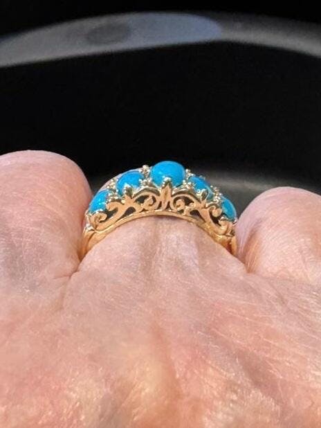 My wife is delighted with the beautiful turquoise & gold ring after years of searching we have finally found the perfect fit. Sized to perfection and delivered on time stylishly present in a wooden presentation box and gift wrapped she couldn’t be more happy with year’s Christmas gift