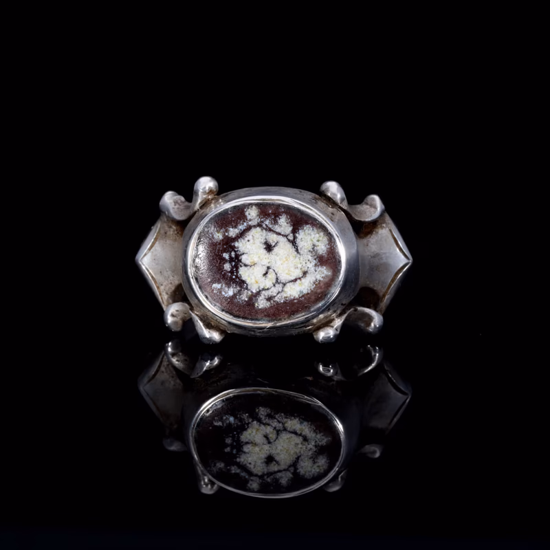 The Ancient 1601 Renaissance Silver Memento Mori Portrait Ring