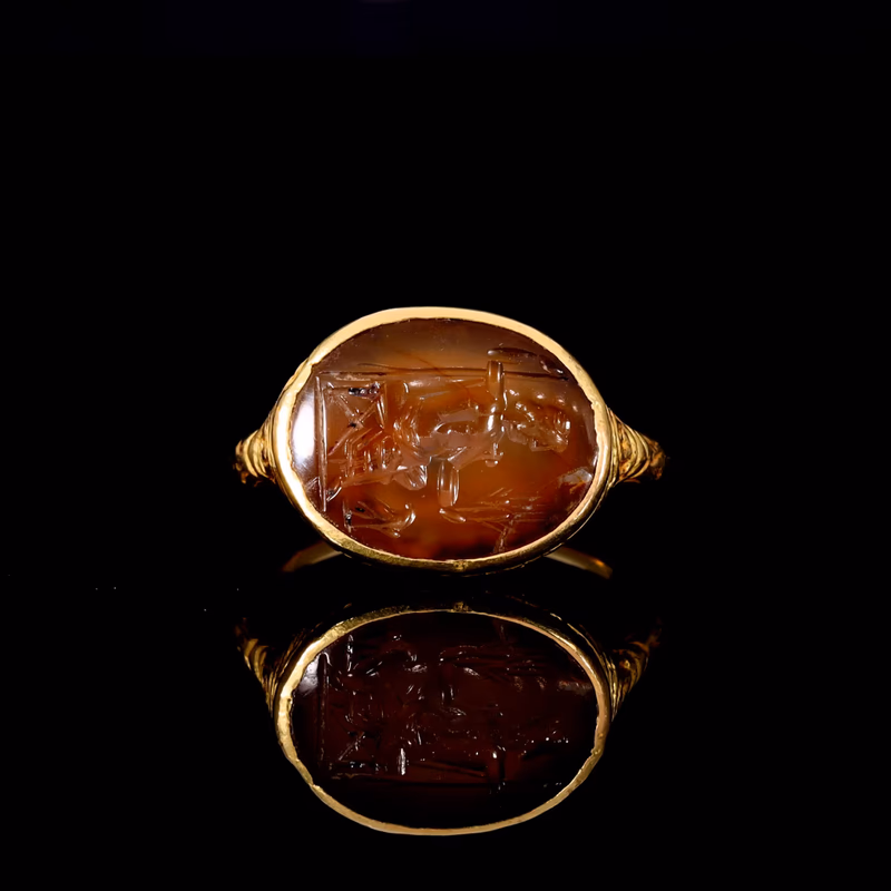 This ring has a strong and well-documented provenance. It was acquired on the London art market in the late 1980s–1990s, later forming part of a private East London collection. It has been checked against the Interpol Database of stolen works of art and is accompanied by an official search certificate. In 2025, the ring was exhibited at Harwich Museum, Essex, with a photograph of the artefacts on display included.