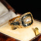 This outstanding antique ring from 1830, the year of William IV's rise to the crown, features black enamel detailing with gold lettering surrounding a hair panel set behind a piece of clear crystal. The ring was created to help someone honour the memory of a loved one who had passed away.