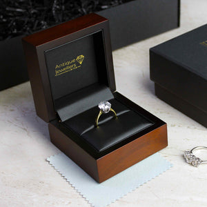 Your ring will arrive inside a large ring box, inside a storage/presentation box. Alongside that we'll include an envelope containing a keepsake letter about your specific jewellery and its history for the recipient. If the description stated the ring would contain any additional paperwork then that will be included in the envelope. Rings are delivered in an unbranded postage boxes, as we know many people want their gifts to be a surprise. If you are outside the UK we are required by your country to include a customs declaration on the packaging, so we can't keep those as hush-hush.