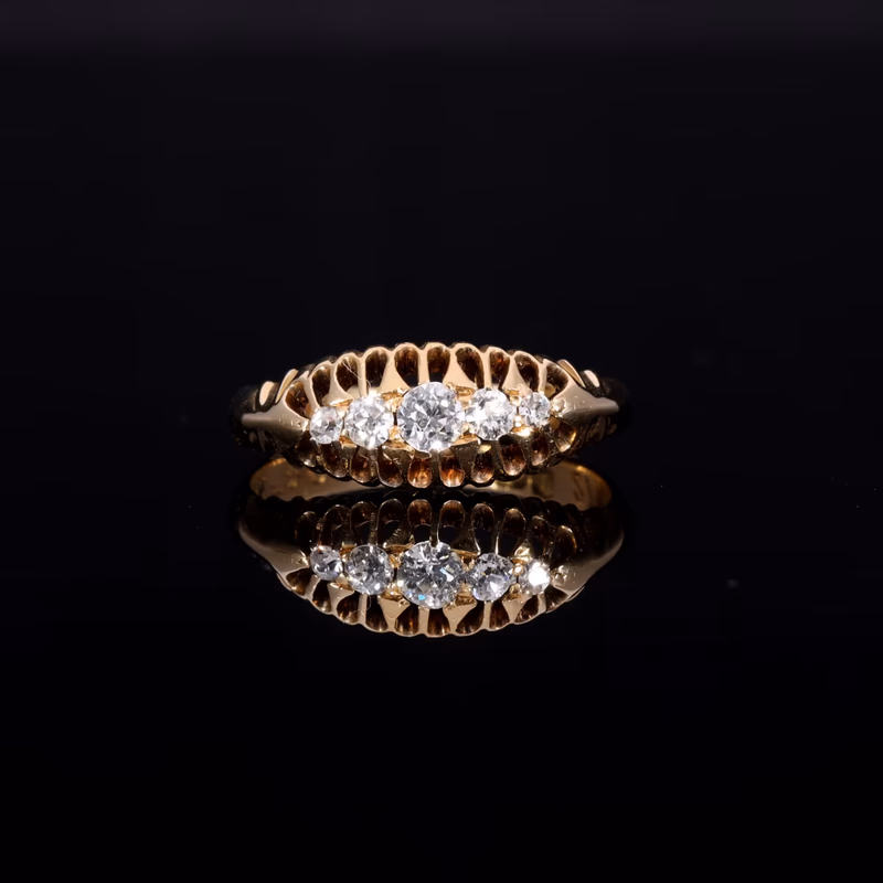We use three methods together to determine age. When the assay office has used hallmarking letters to specify the year of manufacture we use those as our guide, when clear and unambiguous these give an exact year we present. If there are no hallmarks or the hallmarks are hard to discern on older antiques we factor in the style of the ring and the cut of the diamonds. The way diamonds have been cut over the centuries give a good guide to how best to date a ring, and jewellery, like clothing, has a fashion coherent with its era. Sometimes we also obtain jewellery in sets, where the dating of the other pieces from that set can act as a suggestion of age for the ring. Where an independent expert report is provided, that will state the details as assessed by an external expert. Presentations of year or era are a guide, but should not be considered a guarantee.