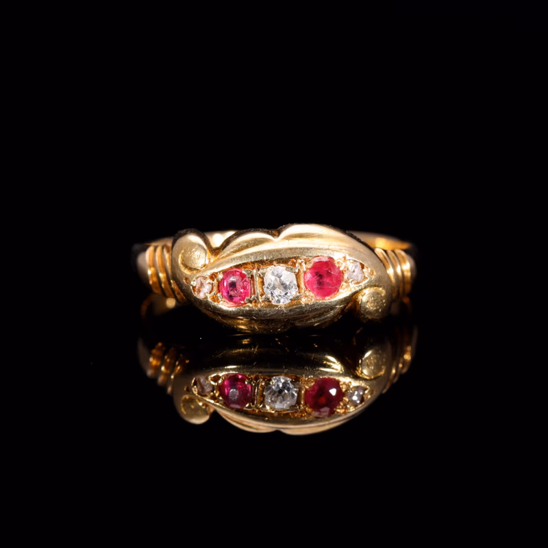 The Antique 1919 Diamond and Ruby Scroll Ring