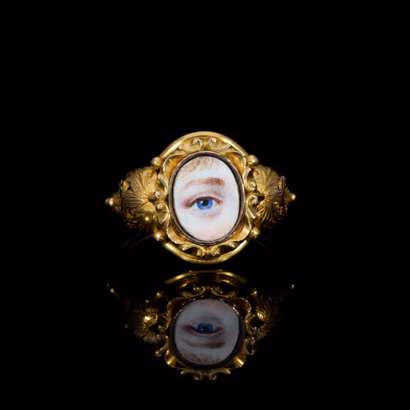 Lover's Eye jewellery was a deeply personal and intimate token of love or remembrance popularised during the Georgian era. These miniature paintings, often of the eye of a loved one, were intended to convey a sense of mystery and devotion, as the identity of the person depicted was known only to the wearer and the giver.