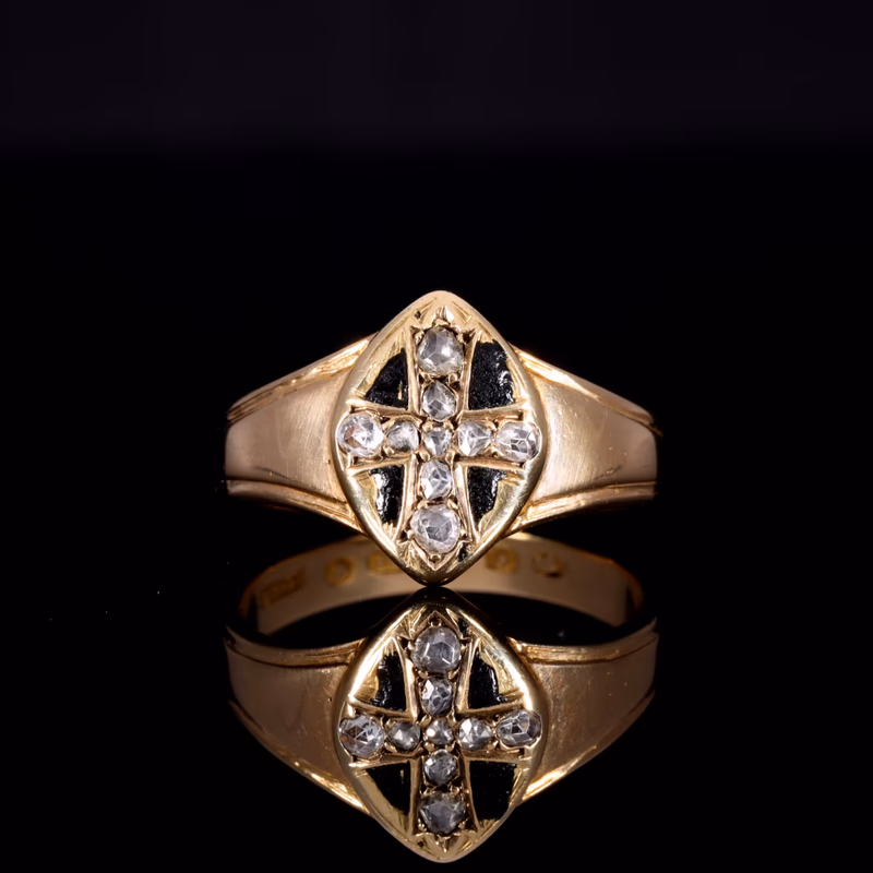 The Antique Victorian 1870 Cross Of Diamonds Mourning Ring - Antique Jewellers