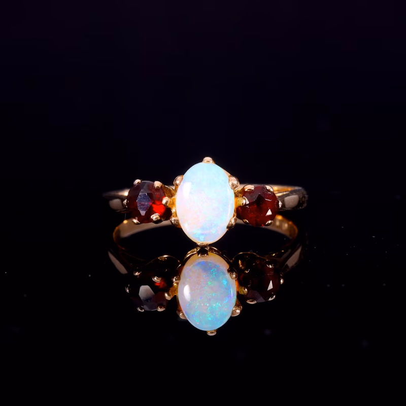 The Vintage 1982 Opal And Garnet 3 Stone Ring