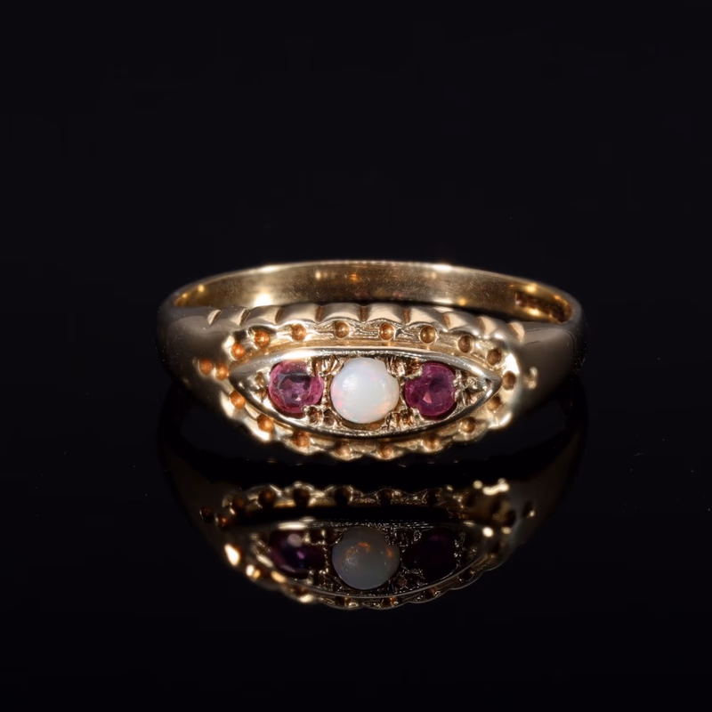 The Vintage 1997 Ruby and Opal Boat Ring